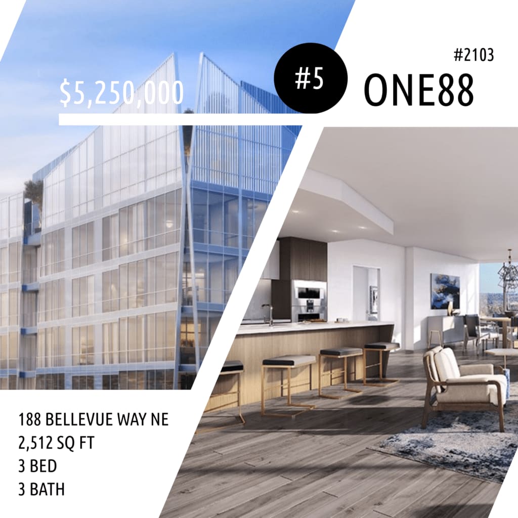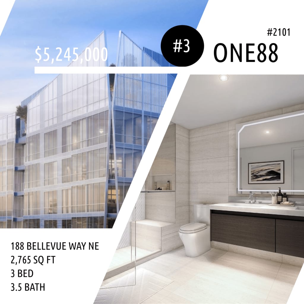 Second, third and fifth on the list is One88 by Bosa. For those of you unfamiliar, One88 is located at 2nd and Bellevue Way. One88’s location will be forever popular due to its west facing views over the protected Downtown Bellevue Park. With just 21 stories, there are 147 unique homes. I’ve sold in the building and love it. Not just for the location, but they have a nice set of amenities, spacious outdoor patio and simple but beautiful interiors.