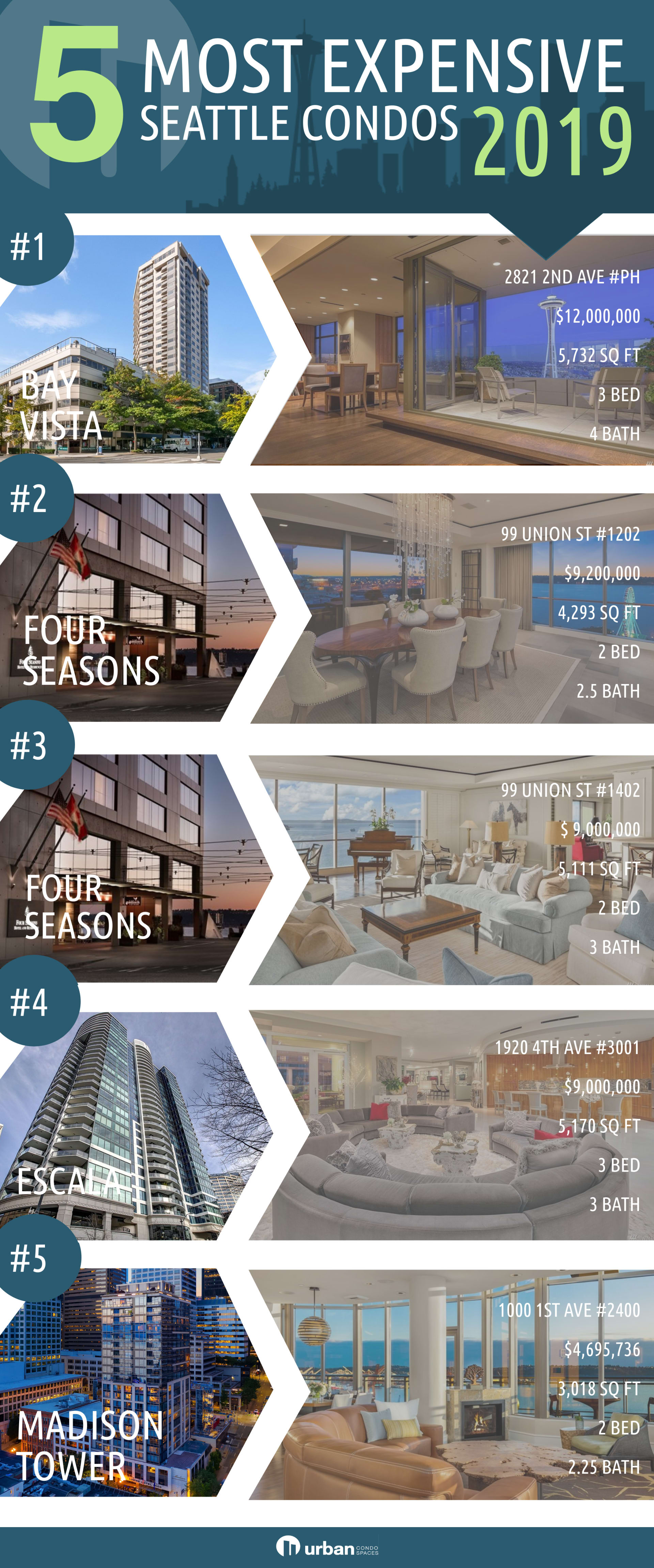 Every year, we highlight the top 5 most expensive Seattle condo sales. This year was truly record breaking. The penthouse at Bay Vista was the most expensive condo ever recorded in Downtown Seattle. See our list below and enjoy the video!