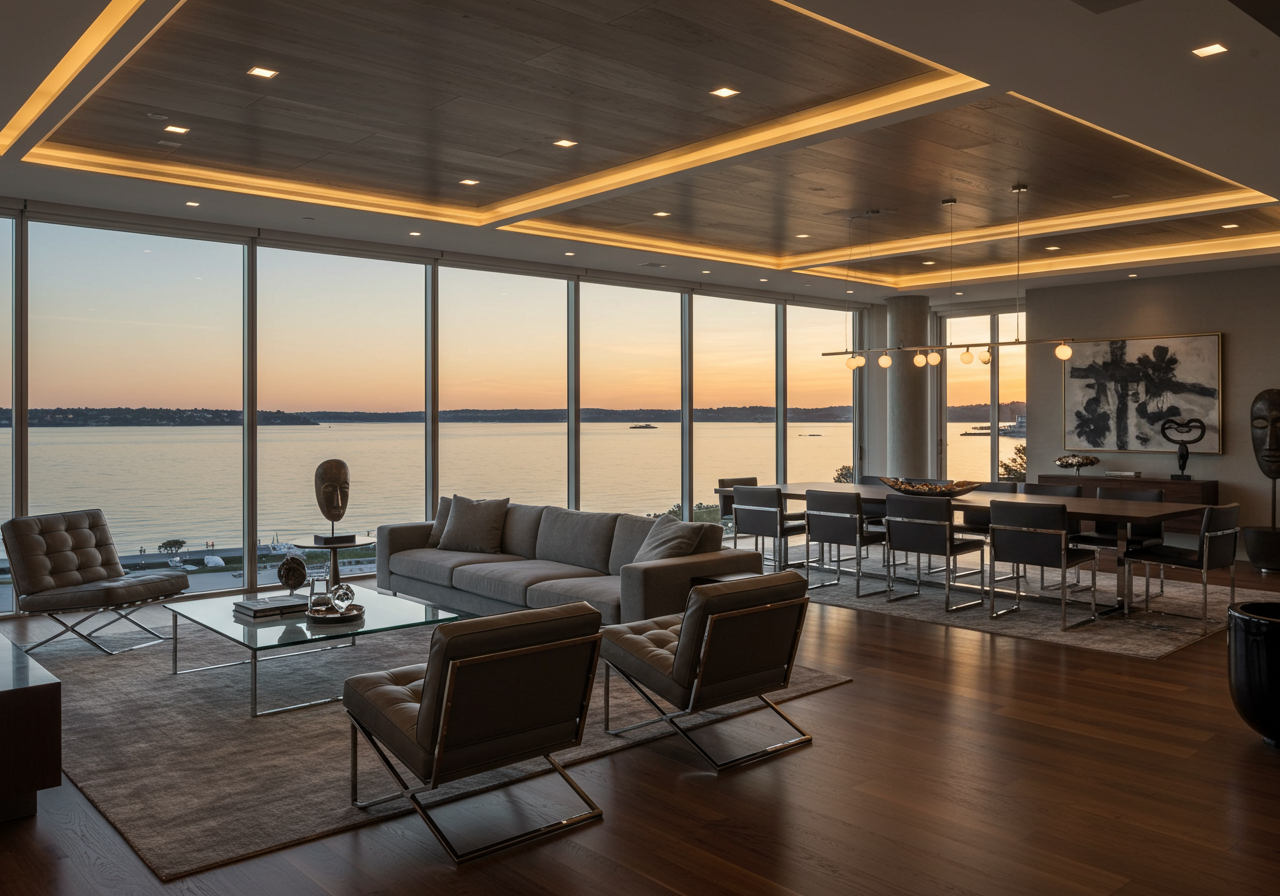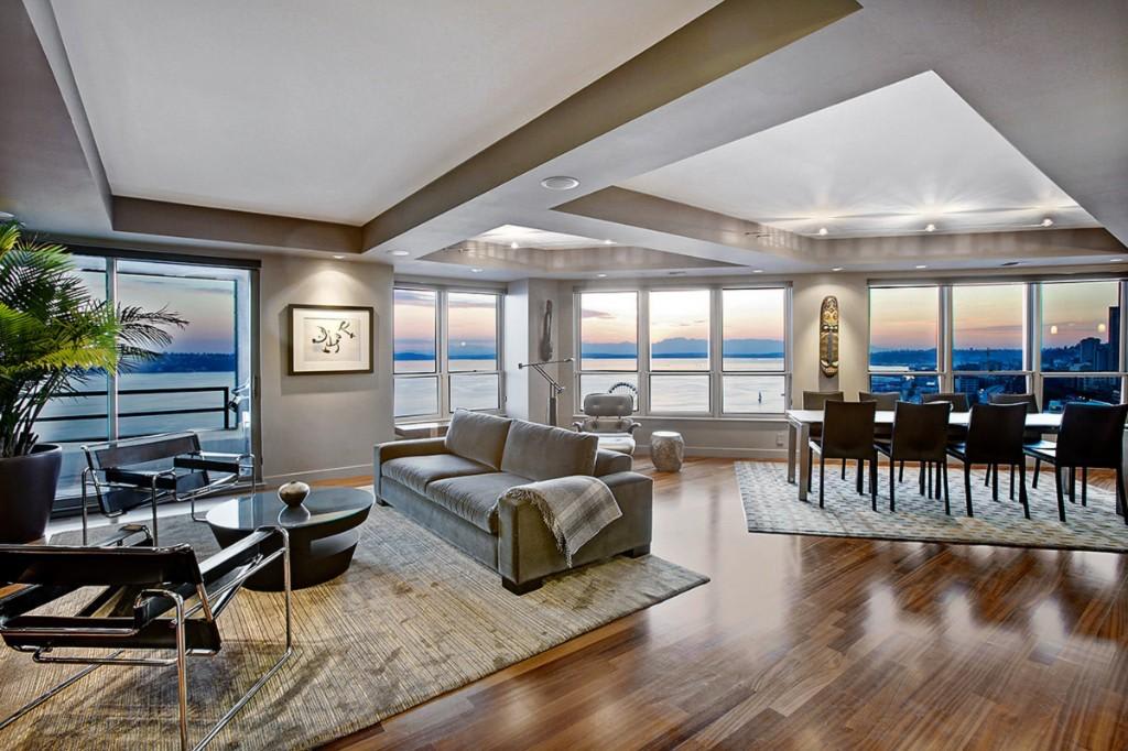 Huge west facing views. Modern kitchen, custom lighting, art alcoves, wireless surround sound and spacious master suite.