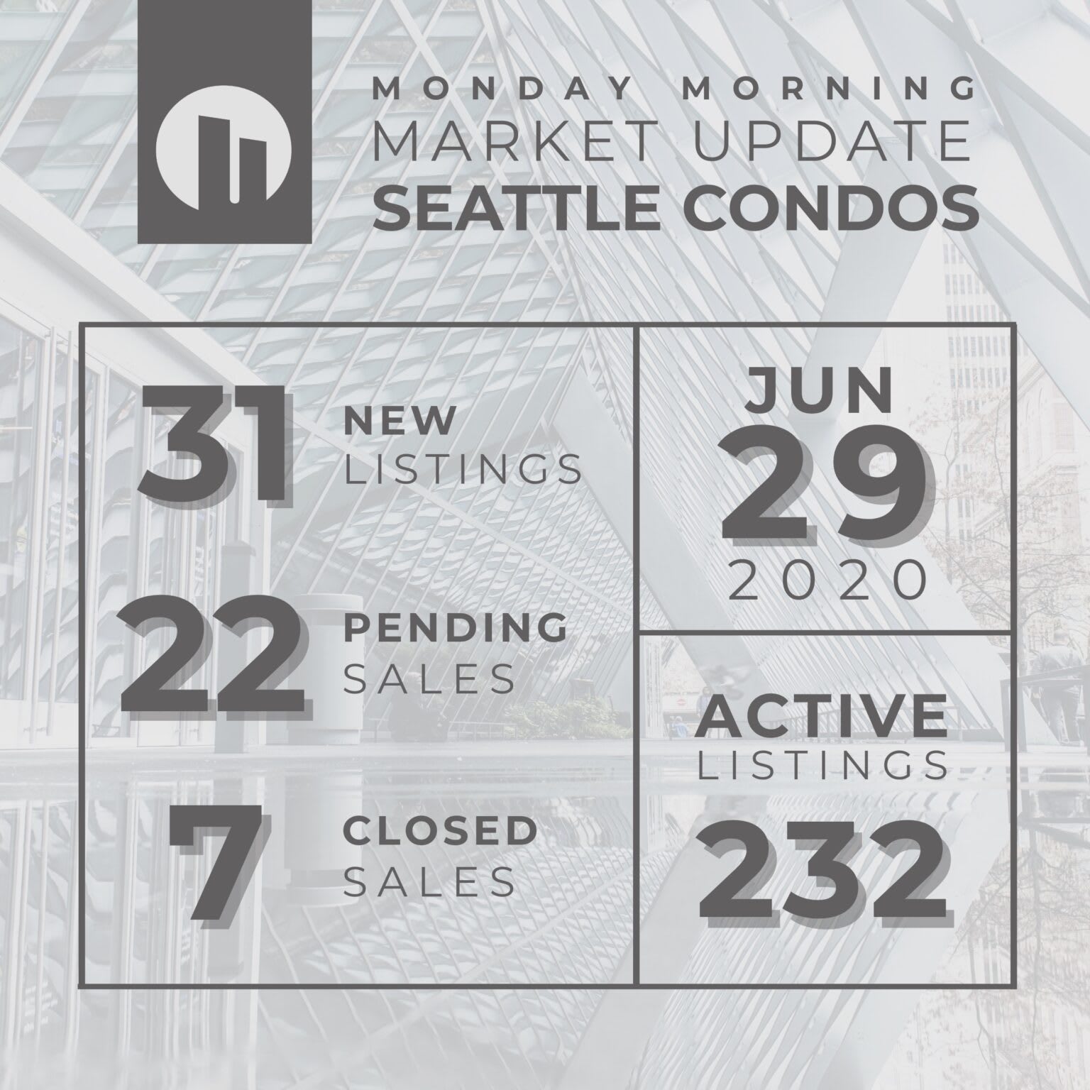 In regards to this week’s market conditions in Seattle’s Downtown core, listings rose to 208 units and 232 condos for sale if you consider the new construction units currently listed. There were 7 closed sales and 22 pending sales. Over the last 5-6 weeks, Downtown Seattle condo inventory has risen 25% – up from 165 units or so back in March.