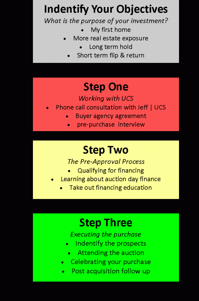 When buying a condo foreclosure it is imperative that you understand how to make the right purchase. Let UCS help you to take advantage of market conditions while meeting goals and objectives identified through our 3 step process.