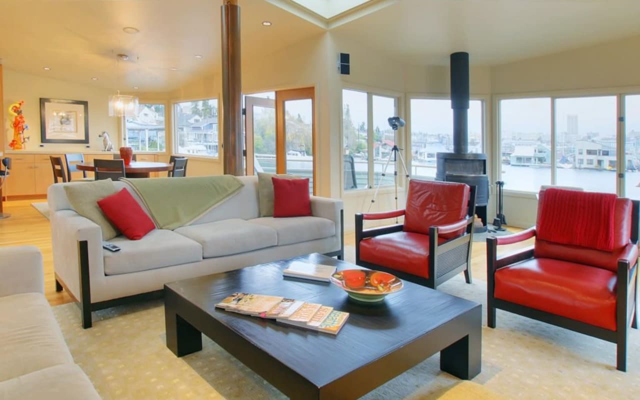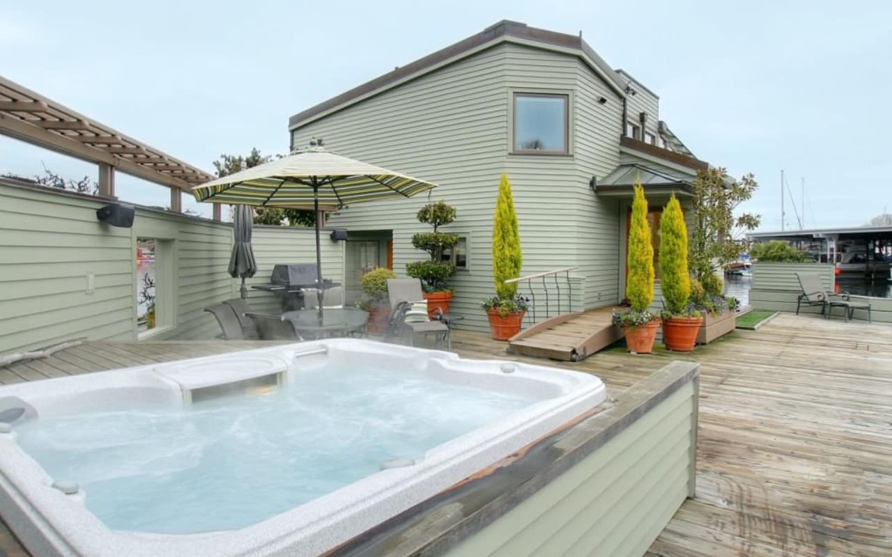 It features contemporary interiors with hardwood floors, stylish lighting and an updated kitchen with Viking Range. It has 2 stories of living, is one of only two houses on its private dock and includes 2 parking stalls in a covered garage. I thought the hot-tub on its massive private deck was pretty impressive as well. I dream of being able to commute to Husky Football games in boat. This would be the perfect place for it. You may have noticed the boat parked just outside this homes front door! Luxury houseboat living in Seattle – If you could, would you do it?