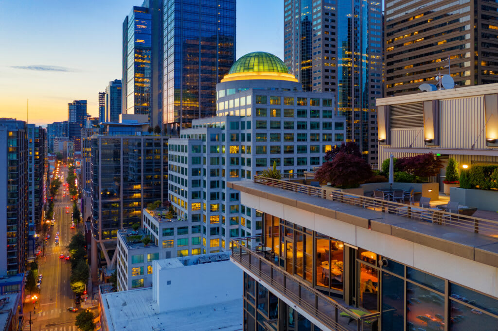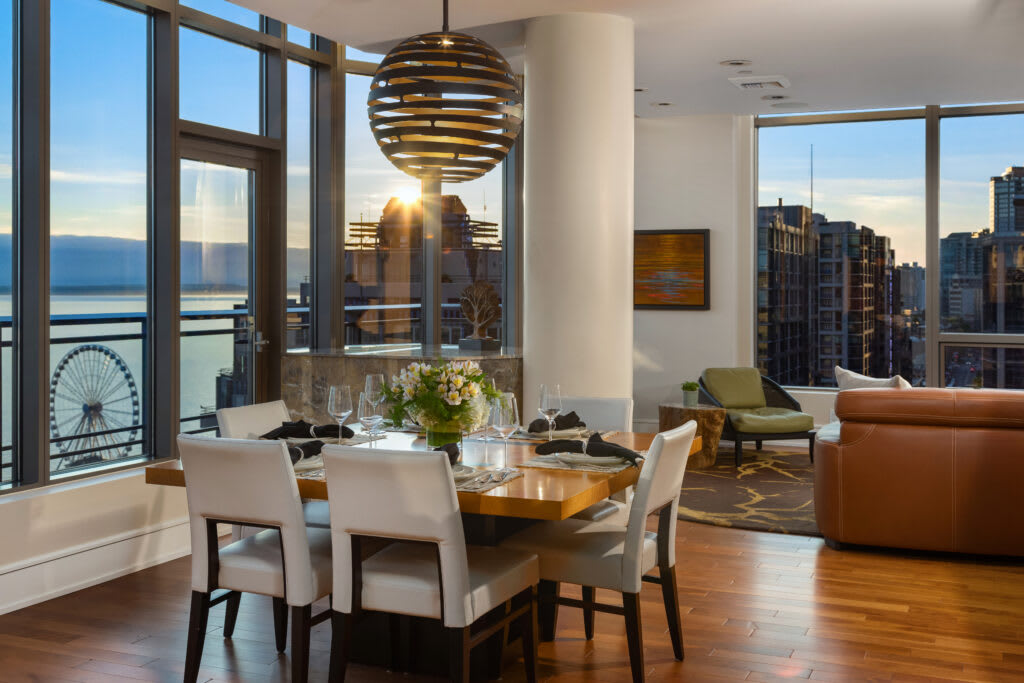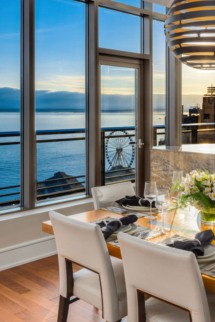 ​​​​​​​This incredible 24th level space is 3,018sf with 2 bedrooms and 2.25 baths. The penthouse sits a top one of Seattle’s premier hotels – Loews Hotel 1000. It includes the services of the 5-star hotel. Every detail has been thoughtfully designed. The island kitchen & living spaces feature panoramic views of Puget Sound & Downtown Seattle. Over 3000sf, 4 fireplaces & 4 view decks. Loews Hotel 1000 Amenities include concierge, room service, valet parking, housekeeping, roof deck, fitness studio & spa.