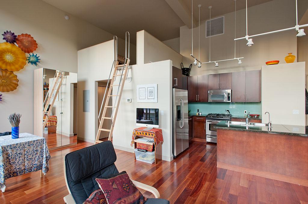 Live/work units don’t hit the market very often. They come in all shapes and sizes and are typically scattered all over the city. Check out this unit at 2200 Westlake. It’s a 2 story, 1,380sf unit right in the heart of South Lake Union. The ground floor work space is still in an unfinished shell, but the upstairs is pretty cool. It has hardwoods floors an island kitchen, a lofty bedroom space and nice views of the city. For anyone looking to combine work and life at home, you may want to check this unit out. The asking price is $499,000. Here is a look at the listing