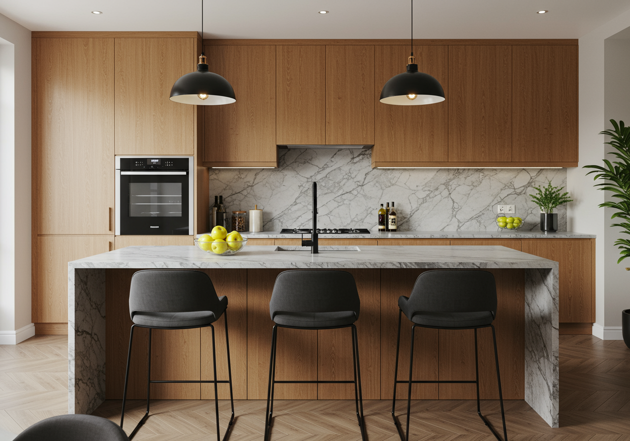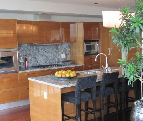 - Dark zebrano high gloss cabinetry