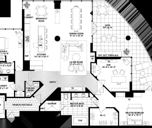 This happens to be my favorite floor plan. Not only because of the size, but the layout is incredible. Not to mention the 531sf deck. You can take a look a more pictures on Escala’s website.