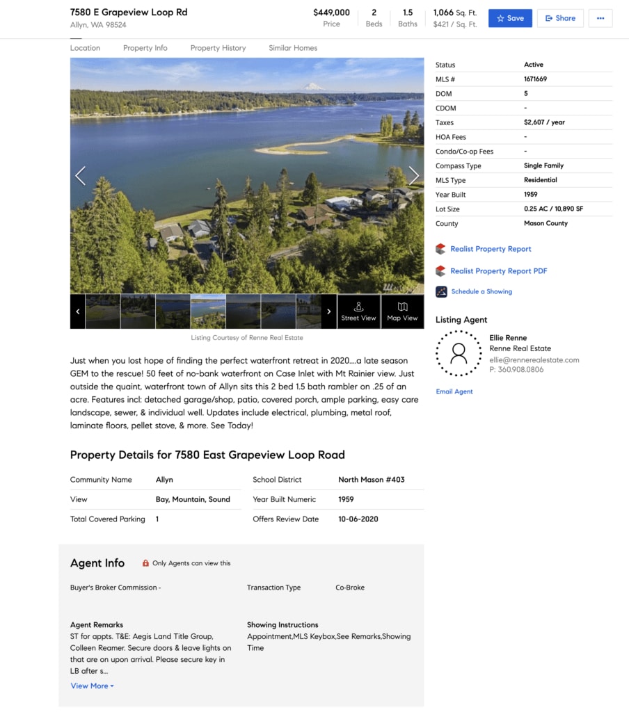 In the video, I used an example of a property in the South Puget Sound (Just south of Seattle).