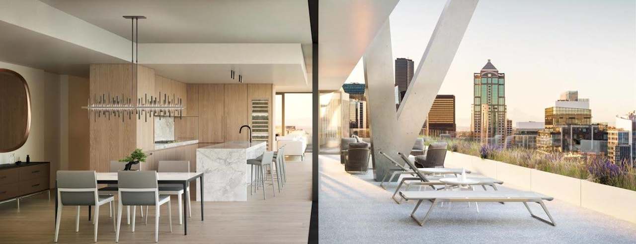 Positioned just blocks from Pike Place Market and Olympic Sculpture Park, First Light offers an unparalleled location on the edge of downtown. Residents will enjoy breathtaking, unobstructed views of the Seattle skyline, the Space Needle, and Elliott Bay. The tower will house 459 units ranging from studios to expansive three-bedroom homes, including a lavish 2,755-square-foot penthouse.